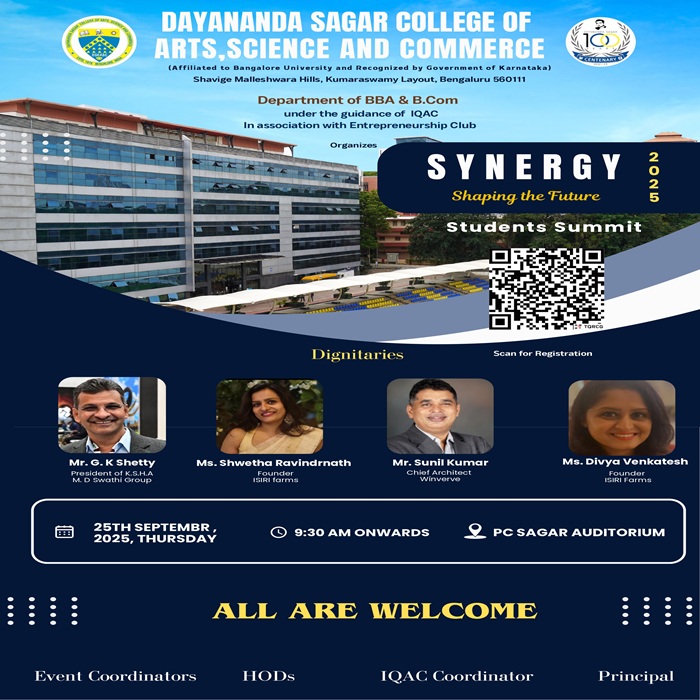 It is with immense pleasure that I extend a warm welcome to all of you to the Bachelor of Business Administration (BBA) Course at Dayananda Sagar College of Arts, Science and Commerce, Bangalore.